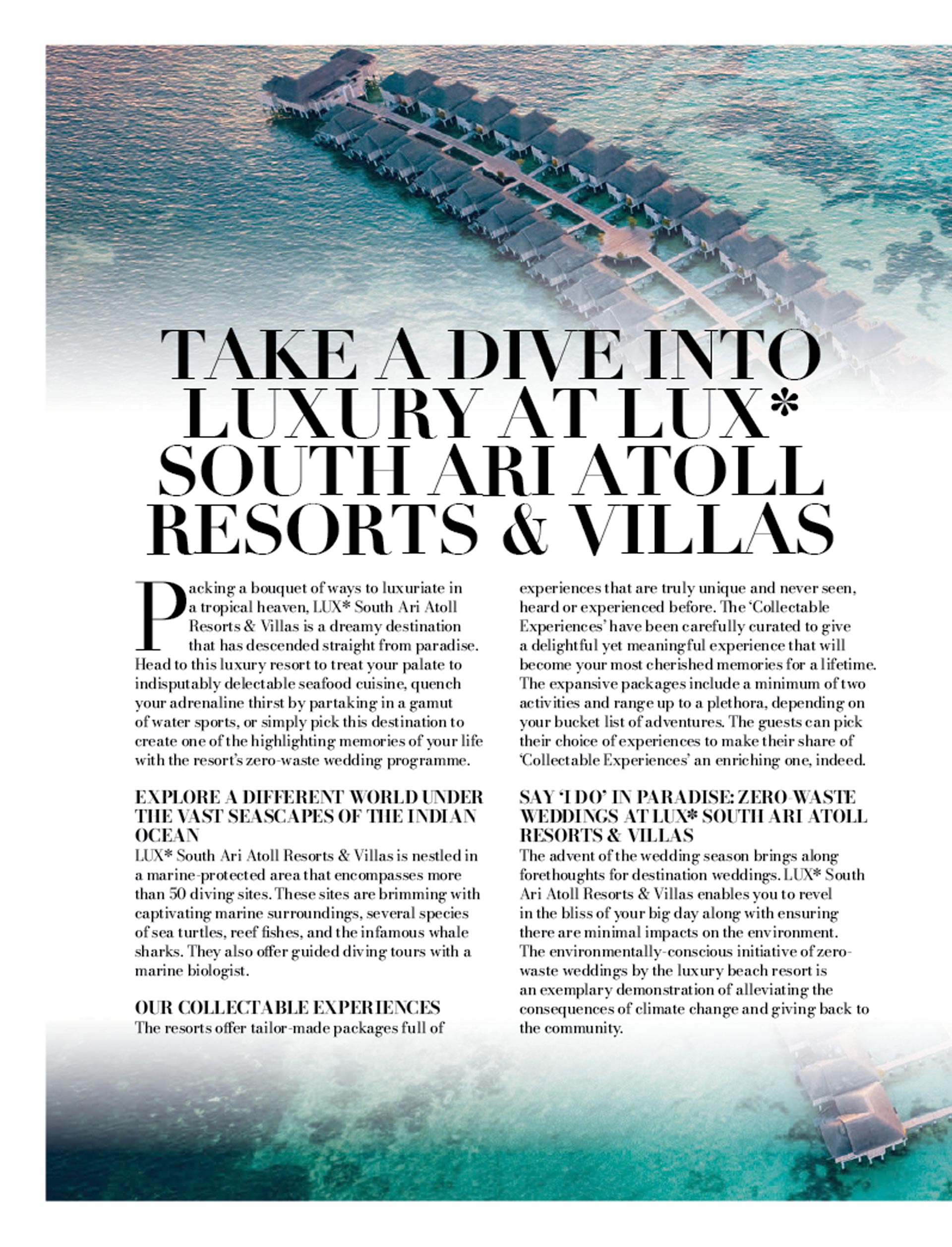 TAKE A DIVE INTO LUXURY AT LUX* SOUTH ARI ATOLL RESORTS & VILLAS