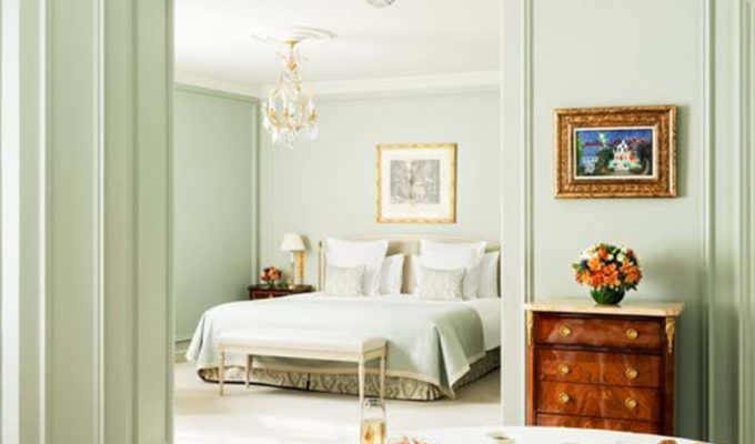 The heart of the whole centenary celebration lies in the gorgeous renovation of its most iconic suites. Two of the hotel’s most luxe suites have been magnificently renovated under the direction of Elvira and Narcisa Oetker. The Signature Honeymoon Suite, nestled under the rooftops with a view of the Eiffel Tower, features a pristine contemporary design. A fresco by Dimitri Rybaltchenko, inspired by the myth of Eros and Psyche, takes this romantic haven to new heights. Meanwhile, the Imperial Suite’s redesign pays homage to the American painter George Condo, a frequent guest who has transformed the suite into his atelier. For the first time, Condo has collaborated on the decoration of a hotel suite, showcasing carefully selected and custom-made artworks. The space has been reimagined as a collector’s apartment, where arresting colors and intimate portraits create an atmosphere of refined artistry. The suite harmonizes green tones with the hotel’s private garden, blending heritage craftsmanship with contemporary design to embody the pinnacle of architecture and decorative arts.