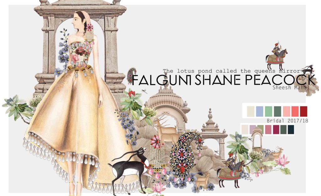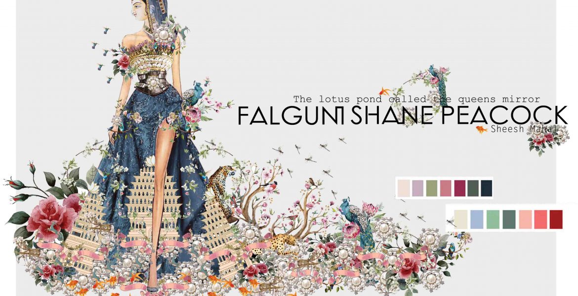 “Falguni Shane Peacock’s Couture Collection 2017 is the story of a Parisienne who leaves her castle and takes a fancy to an Indian Prince. Transfixed by the grandeur of the ‘Sheesh Mahal’, the Parisienne Queen gets enchanted by Indian Couture and vows to never leave.”